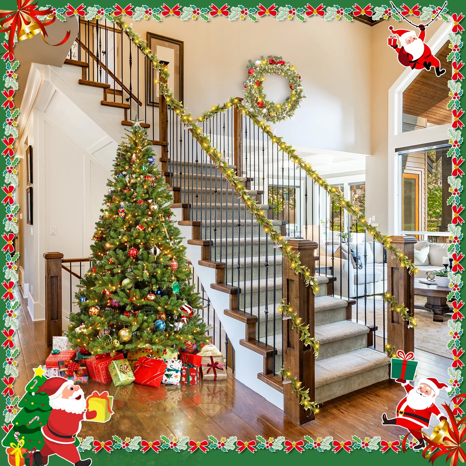VKTECH Mistletoe Christmas Garland With Prelit Lights And Berry Accents